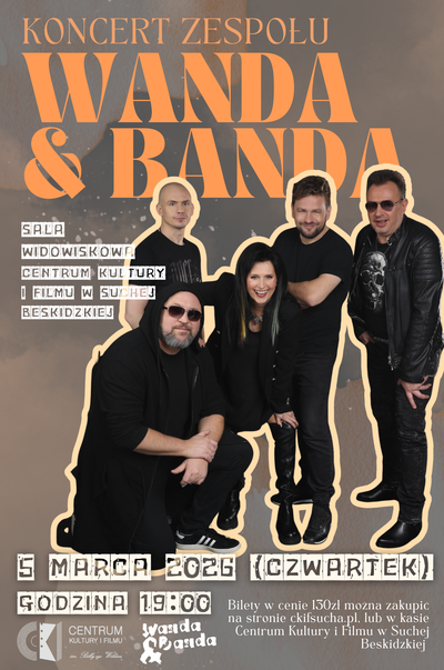 Już 5 marca 2026 roku o godz. 19:00 w sali widowiskowej Centrum Kultury i Filmu odbędzie się wyjątkowy koncert zespołu Wanda i Banda – jednej z największych legend polskiego rocka lat 80., która do dziś nie traci energii ani scenicznej mocy.